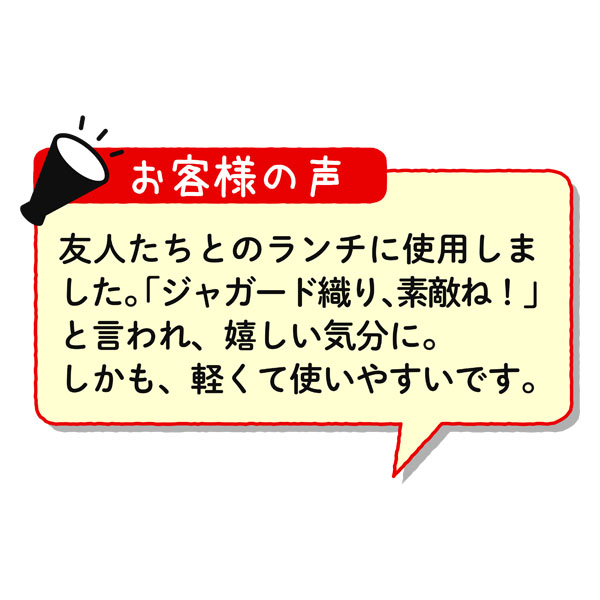 友人たちに「ジャガード織り、すてきね」と言われ嬉しかったです。しかも、軽くて使いやすいです。
