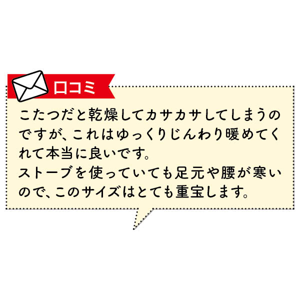 ストーブを使っていても、足元や腰が寒いのでひざ掛けサイズがとても重宝です。