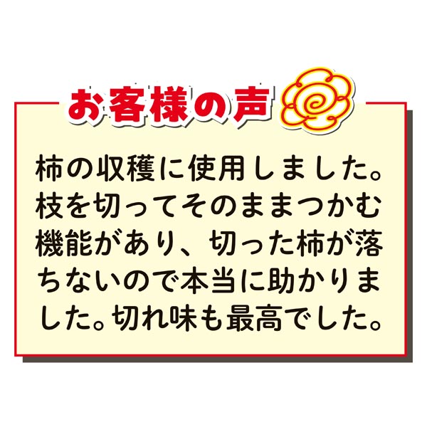 枝を切ってそのままつかむ機能があり、切った柿が落ちないので本当に助かりました。切れ味も最高でした。