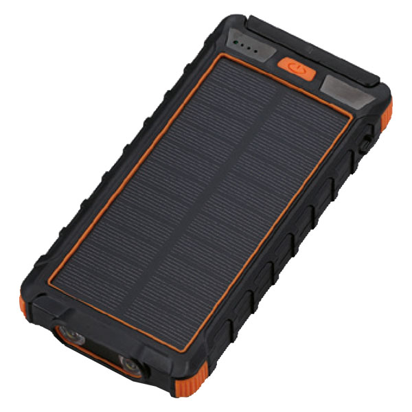 太陽光とUSB両方で充電できるモバイルバッテリー。